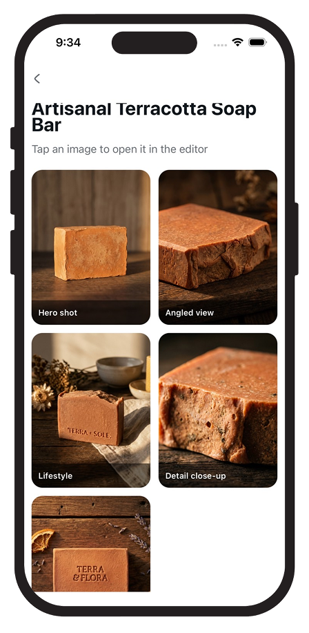 Take a photo of your product, and we generate a clean product image for you.